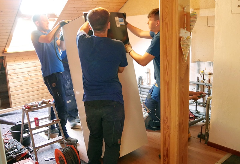 Den kompakte enhed med et beskedent grundareal (59,5 x 62,5 cm) og en kun 1,65 m høj indendørsenhed var et vigtigt kriterium for valget af DAIKIN Altherma 3 H HT varmepumpen. Varmeanlægget hos ægteparret Weinmann befinder sig nemlig ikke som normalt i kælderen, men oppe under taget. Indendørsenheden skal derfor transporteres gennem et smalt trapperum. "Vores trappe er kun 85 cm bred på det smalleste sted, og derfor valgte vi denne kompakte variant, som kan passere gennem vores smalle trapperum", siger Volker Weinmann. En yderligere fordel ved DAIKIN Altherma 3 H HT varmepumpen er den meget støjsvage udendørsenhed - kun 35 dB(A) (i tre meters afstand). Det svarer omtrent til støjniveauet på et bibliotek, hvor folk kun må hviske. Det betyder, at naboerne ikke bliver forstyrret, og at varmepumpen også er velegnet til mindre grunde og tætbebyggede boligområder.